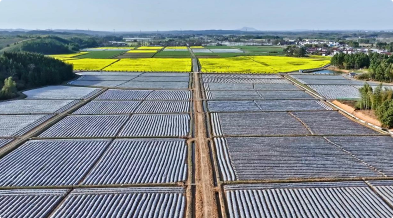 在宣城市宣州区杨柳镇新龙村粮烟融合发展示范区,起垄机、施肥机、打穴机、浇水机、无人机等各式机械一应俱全,在农忙时节发挥了重要作用。