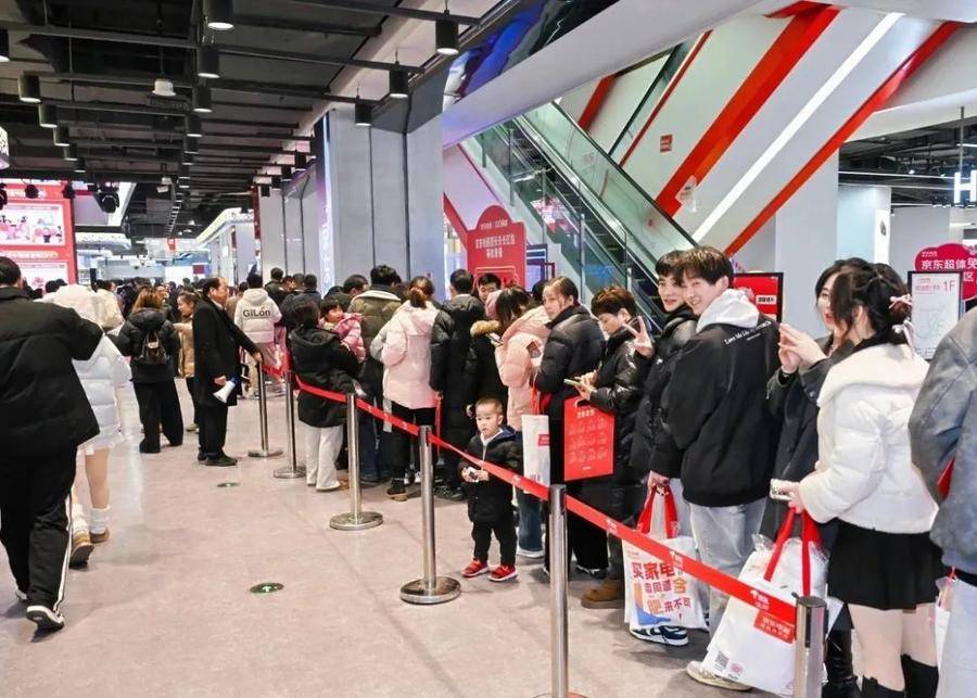 1月15日,在蜀山区京东电器超级体验店合肥店,不少消费者在挑选家电产品、咨询销售人员,整个商场充满了浓浓的节日氛围。