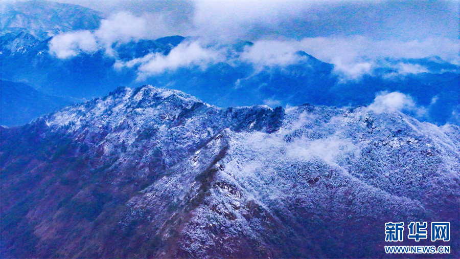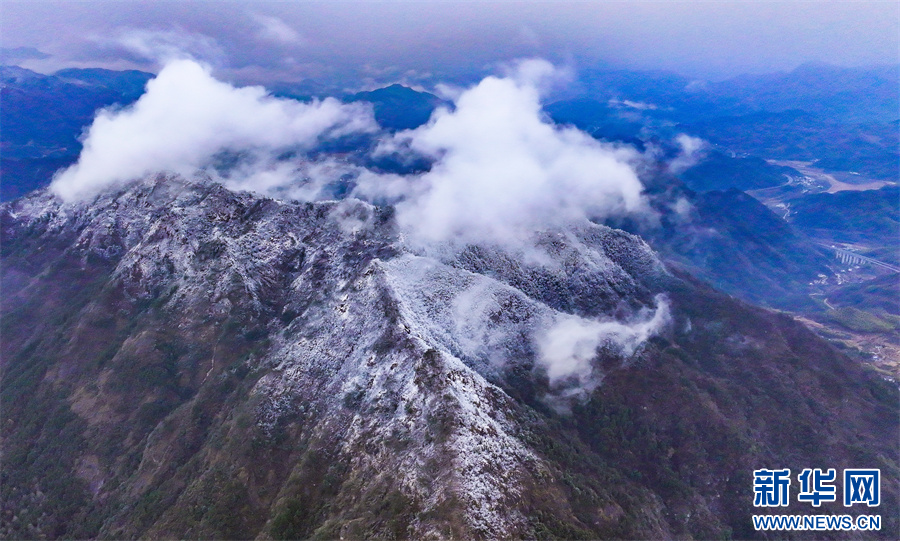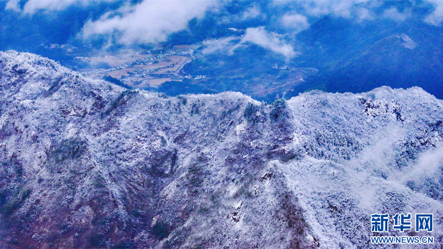 1月26日,在安徽省安庆市岳西县菖蒲镇白云寨村拍摄的高山积雪的壮丽画面。