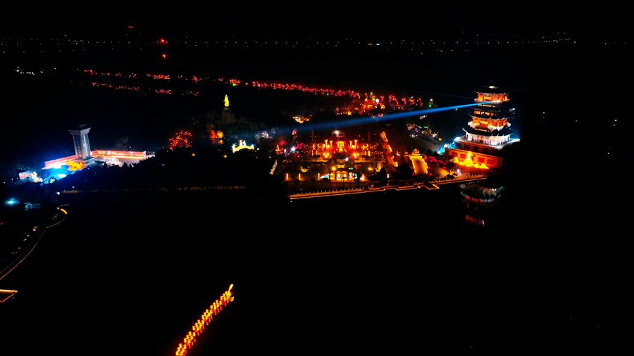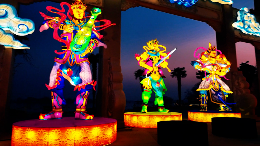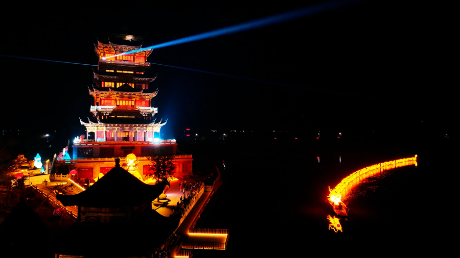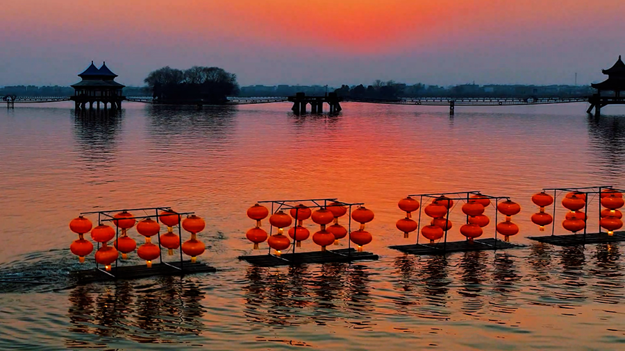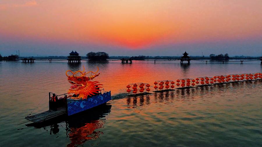 春节期间,在安徽省颍上县八里河风景区,造型各样的花灯将春节氛围感“拉满”,如梦似幻,年味十足。