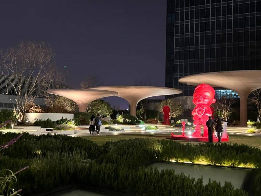 在新粮仓文化商业合集,用水编灯笼、限定蛇年创意外挂楼梯、新年财神打卡墙等装饰,共同营造出浓厚的新春氛围。每到夜晚,草坪上巨型灯笼点亮,年味瞬间拉满。