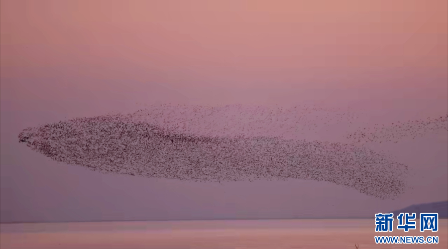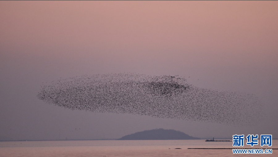 2月4日傍晚,在位于安徽合肥的巢湖上空,出现绵延几公里的花脸鸭“鸟浪”,仿佛一只巨大的鲸鱼在空中翻腾飞翔。庄子《逍遥游》照进现实,“鲲之大,不知其几千里也”。