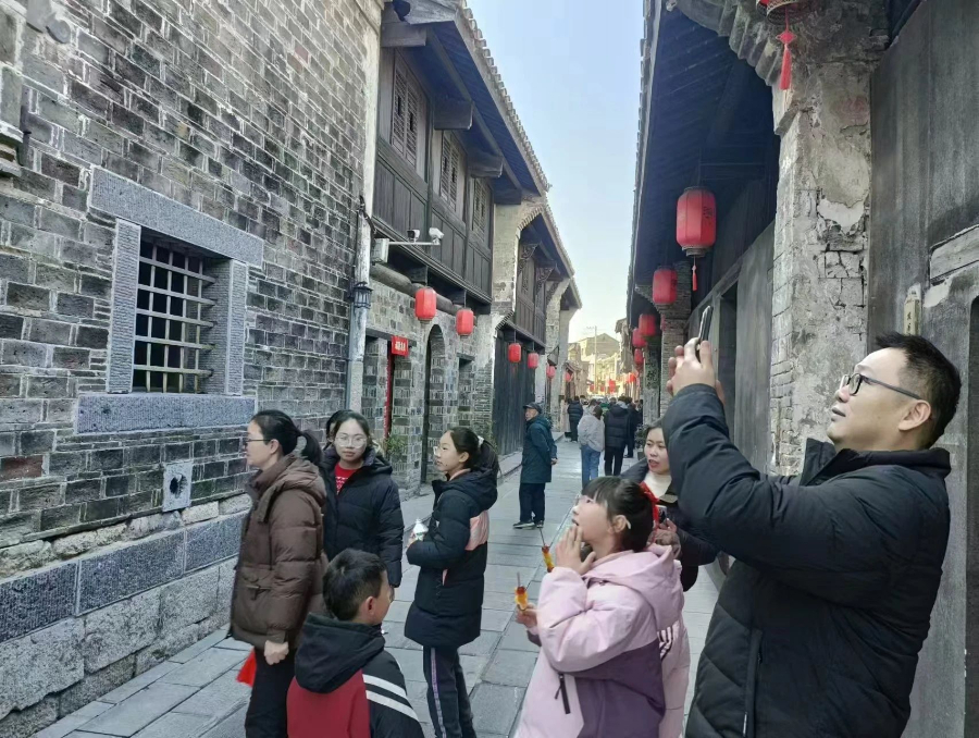 春节期间,巢湖市众多乡村旅游点举办了各具特色的非遗民俗体验活动,营造了浓浓年味。在东庵森林公园,游客们纷纷在“新年快乐”打卡墙边排队敲锣,以响亮的锣声开启新岁。步入景区,非遗拓印、手工制作宋锦挂件、投壶等活动让大家在亲近自然的过程中感受到传统文化的魅力,留下美好的春节记忆。凤栖梧民宿内张灯结彩,热闹非凡,游客们穿梭在特色小院内,欣赏乡村风光,感受浓郁的节日氛围。柘皋老街热闹非凡,李鸿章当铺内游客络绎不绝,柘皋早茶生意火爆。