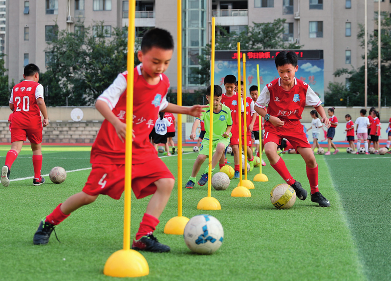 合肥市师范附属第二小学学生进行足球训练 合肥市包河区教体局供图