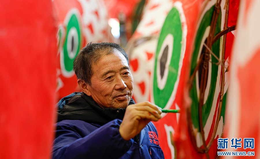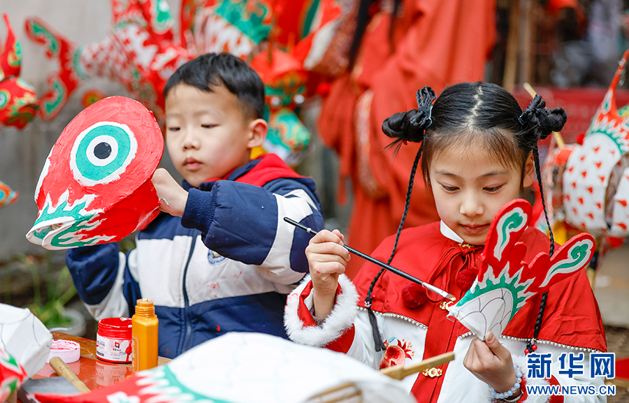 2月10日,村民在歙县溪头镇汪满田村给鱼灯上色。