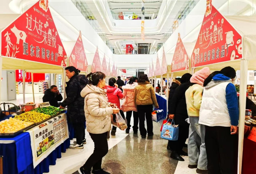 今年的年货节,肥东县云上购物平台还上架20多款霍邱县特色农产品,助力县域结对帮扶。同时,创新数实融合场景,在安徽商文旅融合集聚区撮街,组织国家级非遗“洋蛇灯”表演、山海经主题灯展,以及公和堂狮子头、石塘驴巴、梁园三绝、张集贡鹅等老字号美食展销。(丁胜)