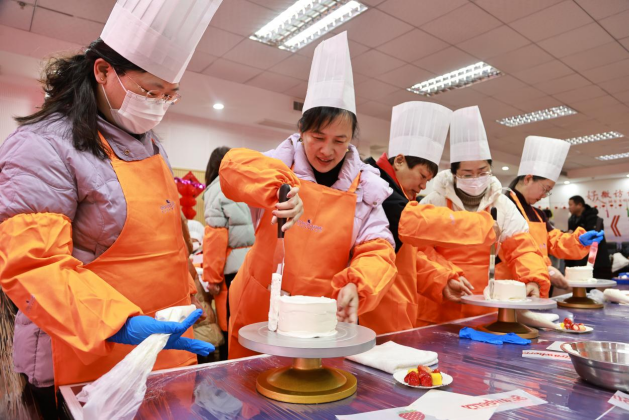 活动现场,主持人介绍了元宵节的历史渊源和传统习俗。在专业蛋糕师的指导下,大家拿起制作工具,在蛋糕坯子上进行设计与制作,相互交流制作方法和技巧。随后还举行了趣味猜灯谜活动。