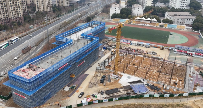 该项目施工单位项目经理汤一飞介绍,项目自2024年10月28日开工以来,目前教学楼主体部分已完成第五层内模搭设,食堂部分正在进行一层的内架搭设,约完成总产值的40%。项目已于2月8日复工,目前工人正在加紧建设,推进工程进度,预计今年3月陆续完成教学楼和食堂的主体封顶,10月初项目总体完工。