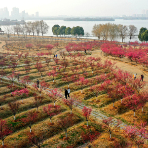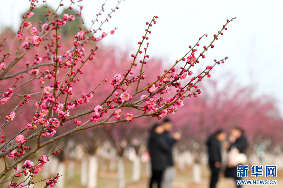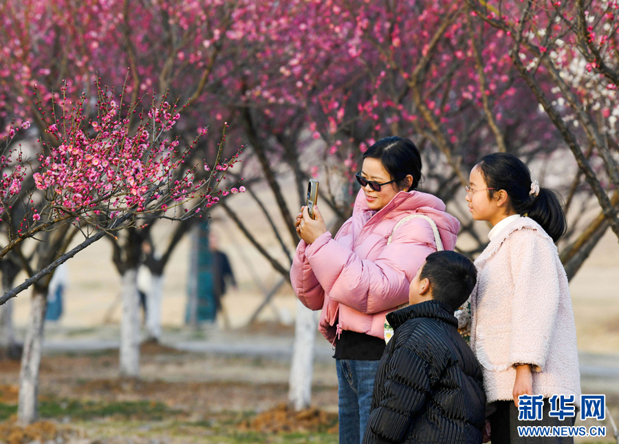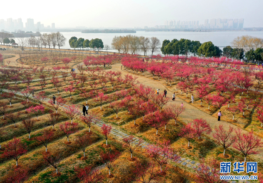 连日来,随着气温回升,安徽省铜陵市西湖城市湿地公园梅花竞相开放,姹紫嫣红,芳香四溢,吸引了不少市民前来打卡拍照。 新华网发(过仕宁 摄)