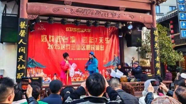 在首个“非遗版”春节的喜庆日子里,新春“欢欢喜喜过大年”活动献上诚意十足、琳琅满目的“文化年货”。安徽省黄梅戏剧院青年演员登上合肥逍遥津公园蘧庄戏台,为市民游客呈现地道的黄梅雅韵;各地新华书店举办蛋雕、面塑、鱼灯、拓印等非遗展示,开展猜灯谜、投壶、舞蛇灯、剪窗花等文化活动,邀请读者呼吸氤氲书香、品味传统年俗……“剧场+公共文化空间+文旅场景”立体化覆盖,宣传文化艺术旅游深度融合,“#好戏安徽”话题持续霸榜社交平台。据统计,全网话题浏览量超3386万人次,海外浏览量超15万人次。