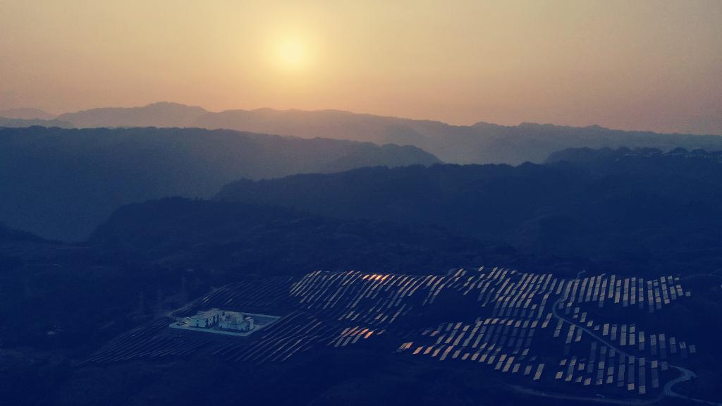 在广西梧州市蒙山县新圩镇屯巴山的“茶光互补”茶园,山坡上铺展的光伏电板源源不断地产生清洁电能,板下一排排茶树长势良好,错落分布的水肥一体设备为茶树生长提供均衡养分。