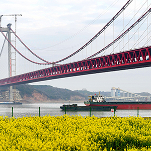 仲春时节,在安徽省铜陵市老洲镇长江岸边,成片油菜花竞相开放,金黄的花朵和江上的轮船相互映衬,构成一幅流动的春日画卷。(过仕宁 摄)