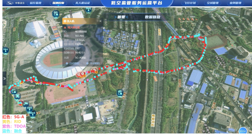 基于低空智联网安全能力底座,安徽移动在骆岗中央公园和政务中心区域搭建了两个“低空智联网样板间”(以下简称样板间)。该样板间依托5G-A通感一体核心技术,部署了十余种新技术、新设备,创新孵化出多模融合感知引擎,实现了数据AI智能处理、合作/非合作目标迅速识别,为低空安防及飞行服务活动提供可靠的信息化保障能力。经多轮实测,各项指标性能均位居行业前沿。