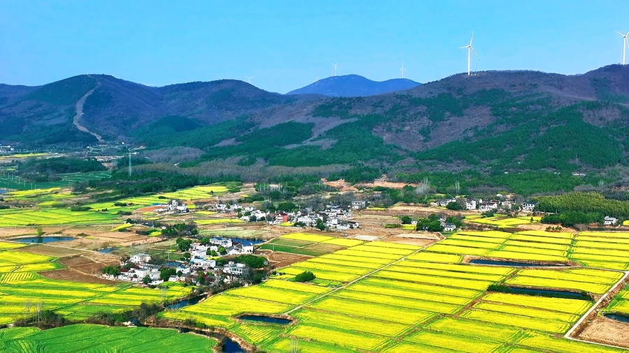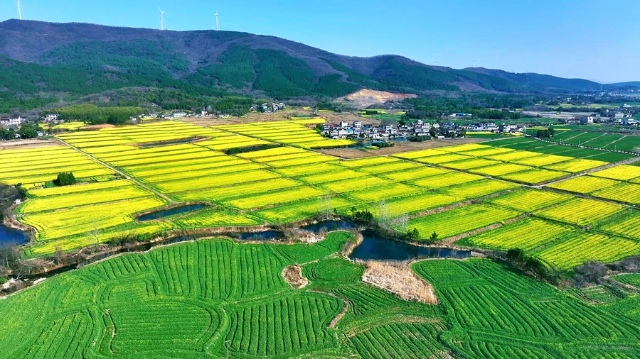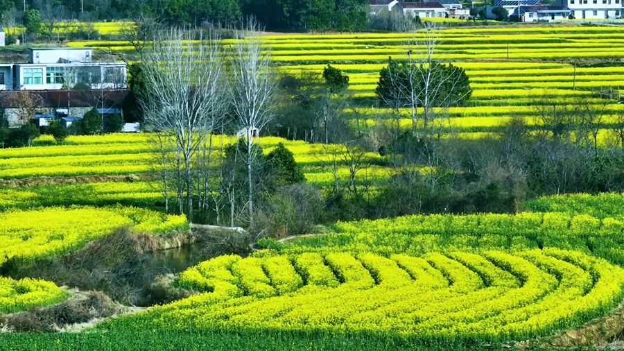 春日时节,万物复苏,在安徽省马鞍山含山县陶厂镇,广袤的油菜花田成为了春游最佳去处。(濮勇)