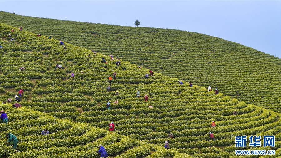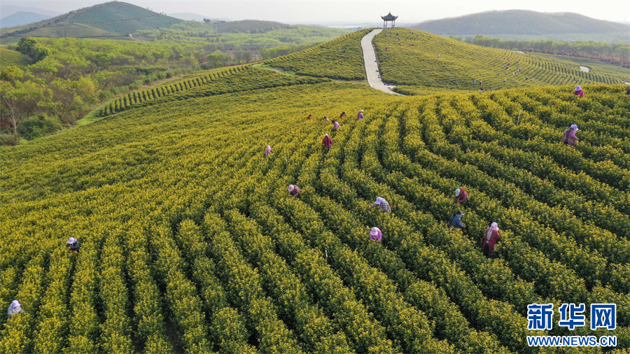 4月1日,在安徽省宣城市郎溪县涛城镇大佛山养心谷,茶农们穿梭于青翠的茶树间,指尖翻飞,采撷嫩芽。