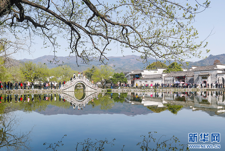 4月2日,游客在黟县宏村欣赏春日美景。