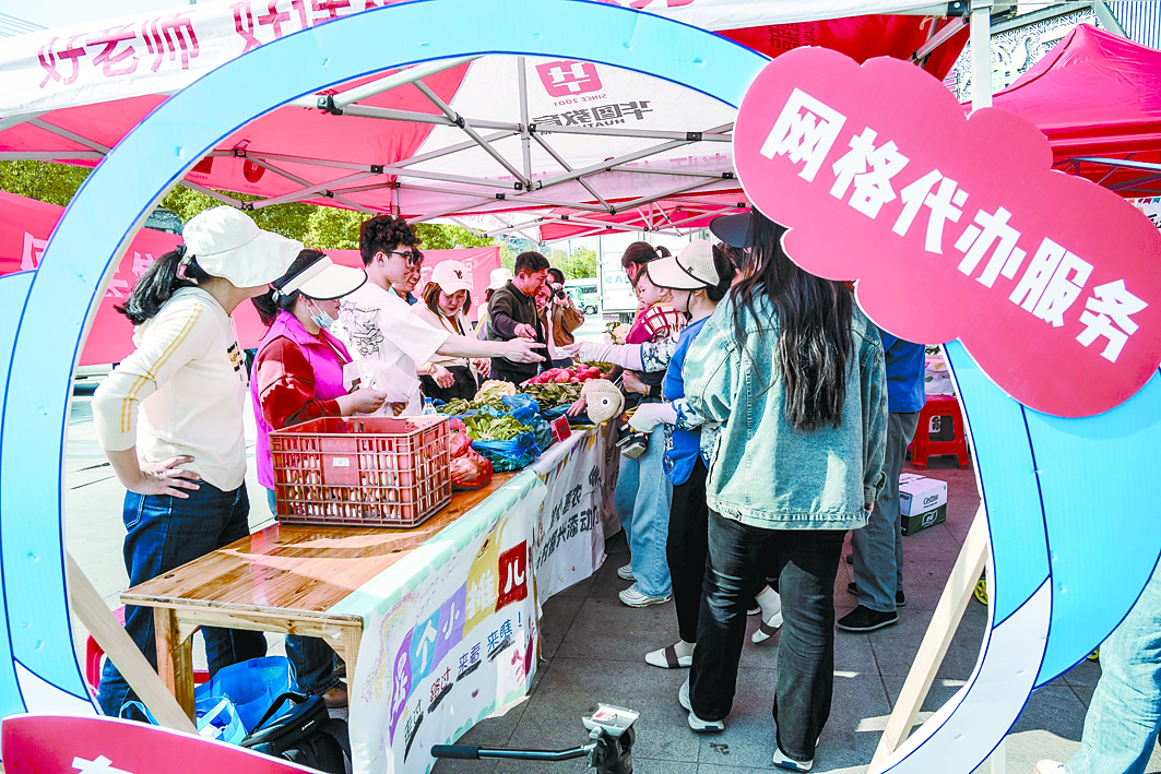 集市设置农产品直销点、司法服务点、购物娱乐点,为居民供应新鲜蔬菜瓜果、开展司法服务等,让居民在家门口享受各项便利,提高办事效率,增强社区凝聚力。(通讯员 龙安 摄)