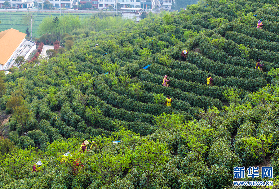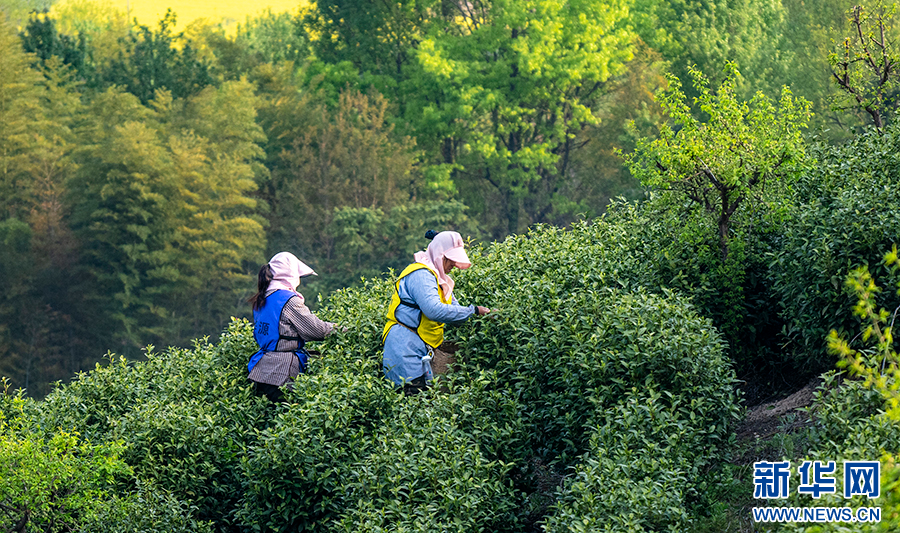 4月3日,茶农在采摘新茶。