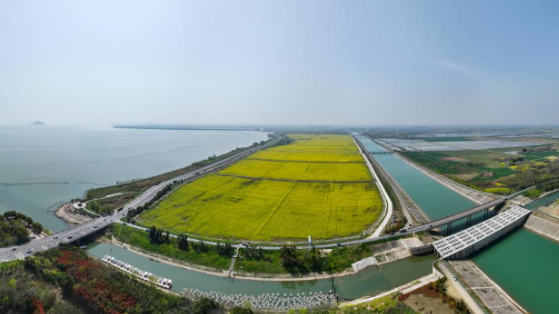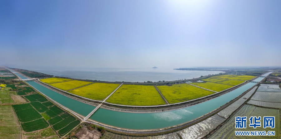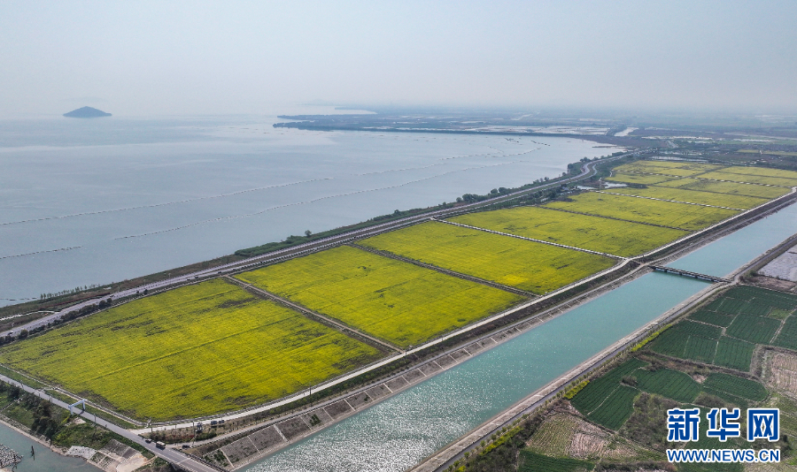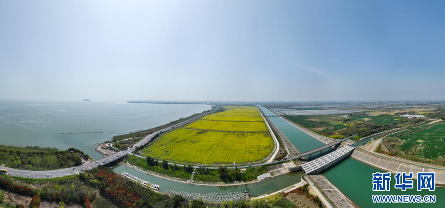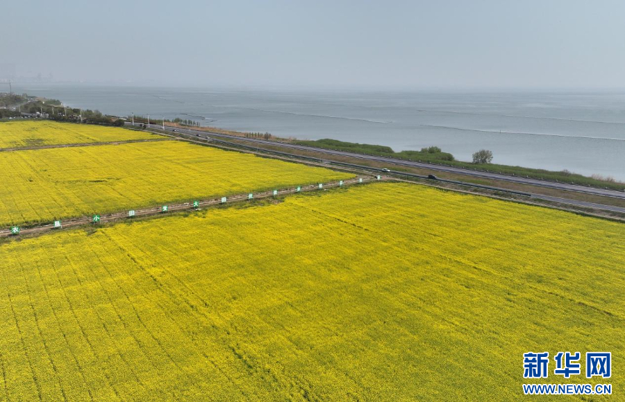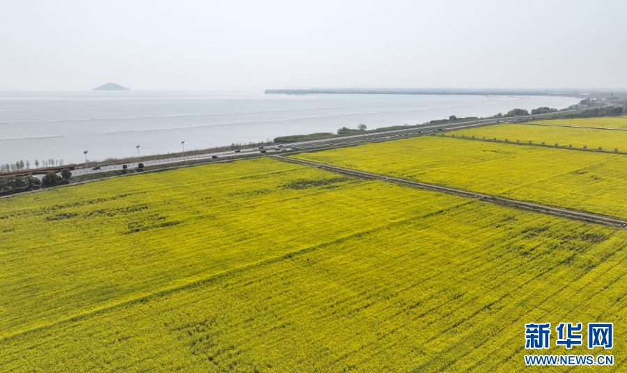 春日时节,安徽巢湖岸边的油菜花进入盛花期。在环巢湖大道合肥市肥西县严店镇段,金黄的油菜花海与蓝天白云、青山绿水,共同构成一幅美丽的田园画卷。新华网发(徐勇 摄)