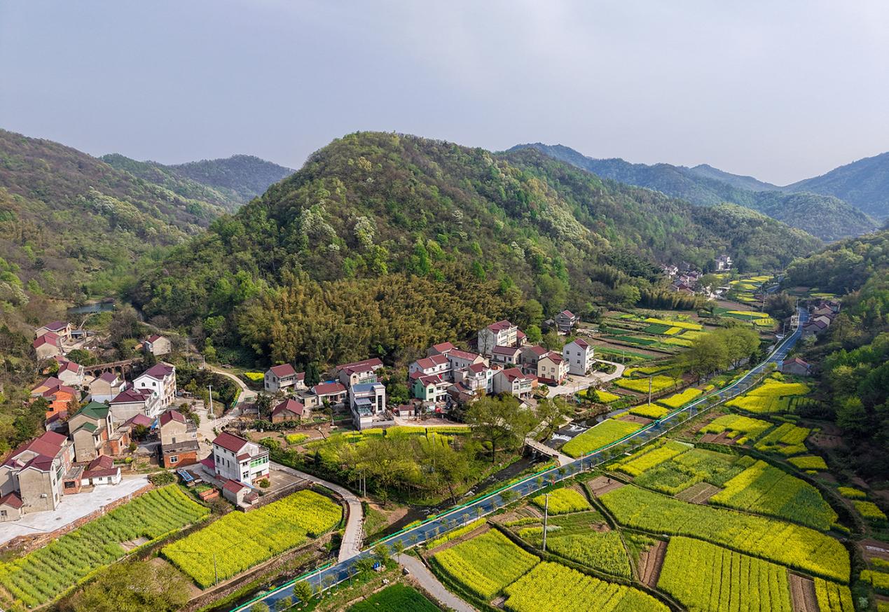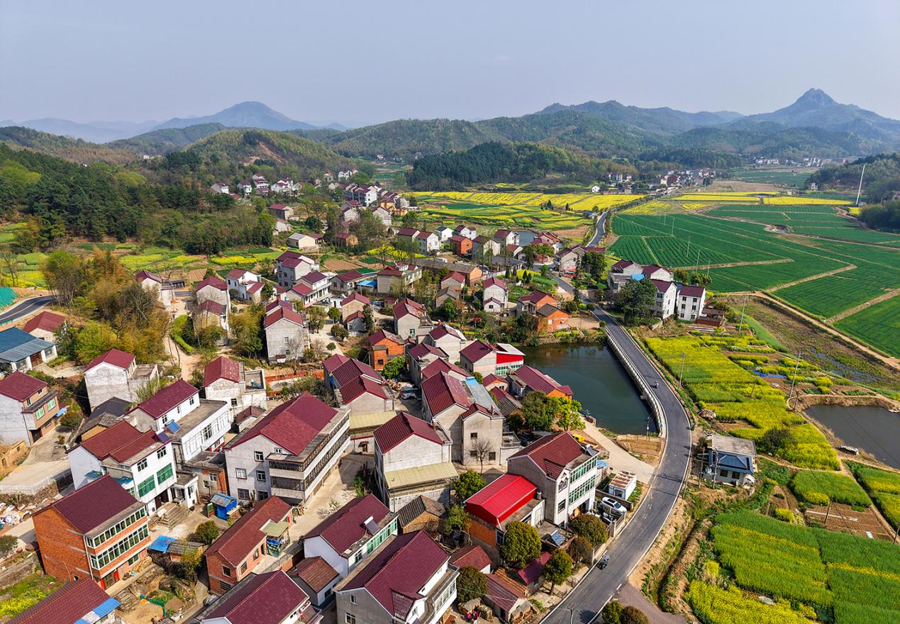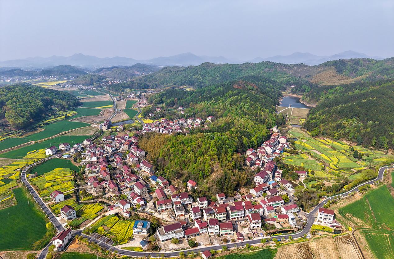 4月2日,安徽省合肥市庐江县矾山镇的田园村庄与青山相映成趣,构成一幅乡村画卷。