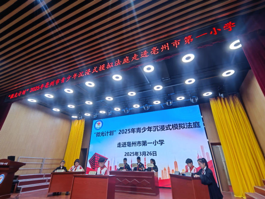 日前,亳州市司法局亳州高新区分局在亳州市第一小学举办青少年沉浸式模拟法庭活动,让学生们“沉浸式”体验“法庭庭审”现场。