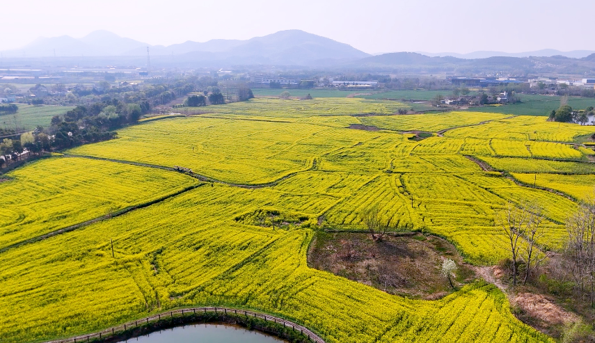 近日,在含山县仙踪镇大山尾矿坑公园,300亩油菜花进入盛花期。金色花海流光溢彩,浓郁明亮,吸引众多游客前来游玩、拍照,尽享春日时光。