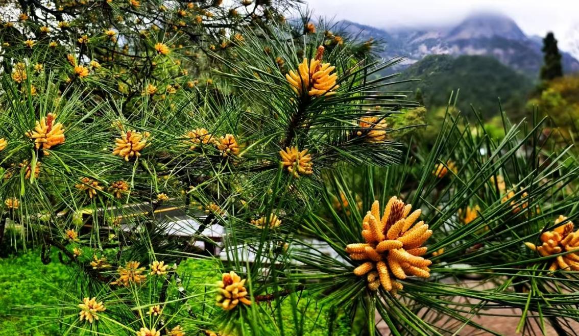 春夏之交,黄山松的花期总会如约而至。尽管没有娇嫩艳丽的花瓣,但每一朵小巧金黄的花蕊,在茂密的针叶间努力地探出头,展示着黄山松千百年的顽强生命力。