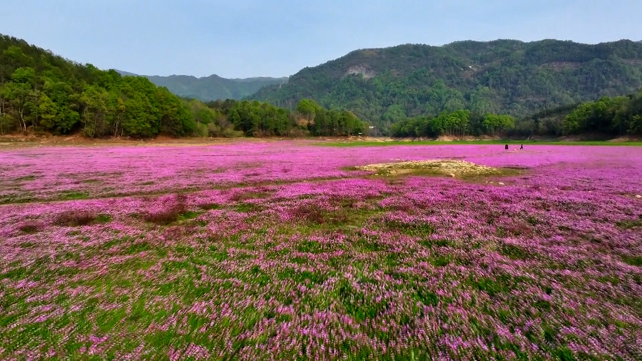 春日时节,安徽省太湖县罗溪村的大片紫云英绽放,紫红色的小花星星点点,将田园装扮成浪漫的花海,如梦似幻。