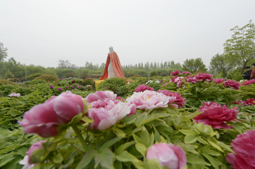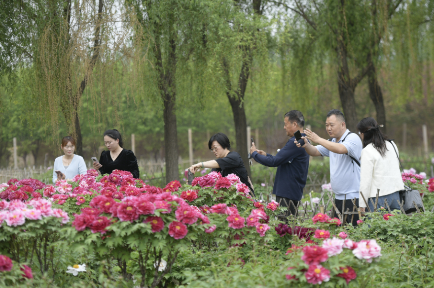 4月11日,在安徽省亳州市华佗牡丹园,游人在观赏牡丹花。近日,该园100多个品种的牡丹陆续盛开,吸引市民和游客前来赏花游览。(陈显锋)