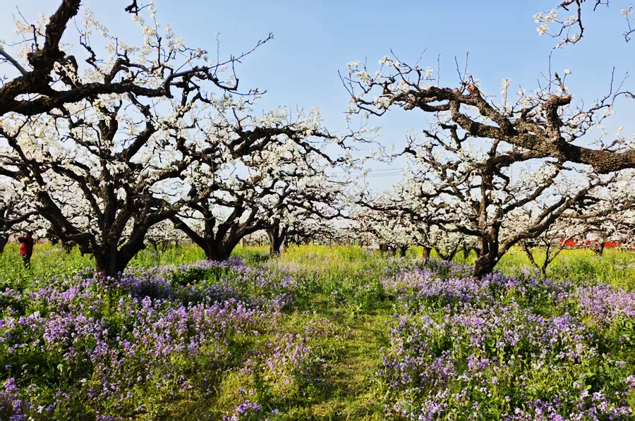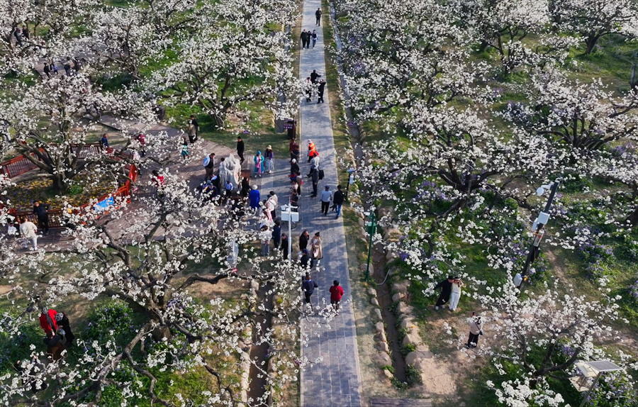 4月4日,游人在砀山县玄庙镇梨园赏花踏春。新华社发(崔猛摄)