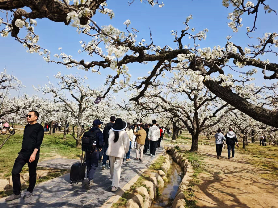 一树梨花一树春,满树春色醉游人。梨花“盛宴”引八方游客共赴春日之约。走进砀山果园,随处可见洁白如雪的梨花挂满枝头,吸引着各地游客来砀山漫步梨园胜境、品味非遗美食,感受“一树梨花满城春”的诗意画卷。