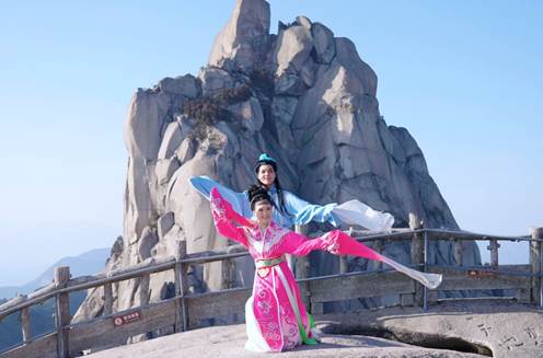 九华山的千年古寺旁,齐云山的奇峰怪岩下,天柱山的奇石云海间……专业团队将舞台巧妙嵌入自然景观,让《谁料皇榜中状元》的高亢唱腔回荡在海拔千米的云端。国家一级演员韩再芬、何云等梅花奖得主领衔主演,更有徽剧、傩戏等非遗艺术惊喜加盟,让经典唱段在云海缭绕中演绎“人在画中游”的奇幻意境。