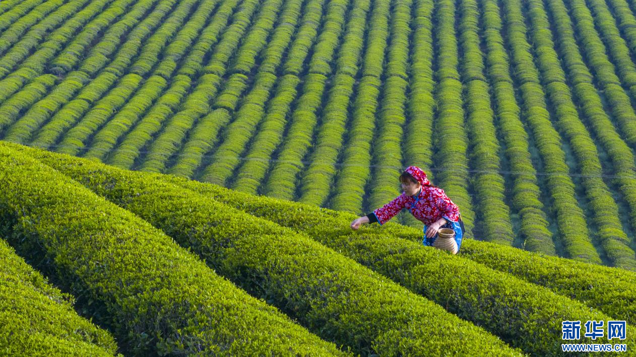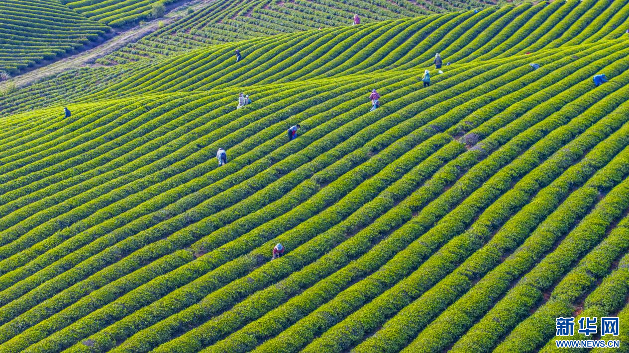 茶农在采摘茶叶。新华网发 (杨科甲 摄)