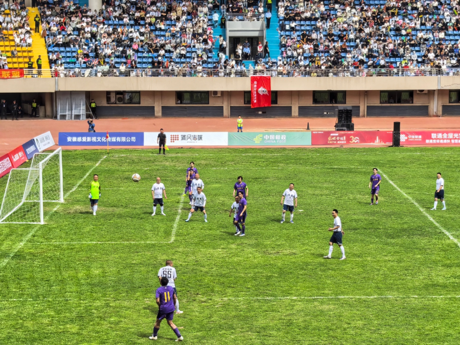 比赛分为三场,临泉县本地业余球队、文王贡酒球队、中国邮政球队轮番上阵,与香港明星足球队切磋球技,为观众们展示绿茵场上的足球热情。