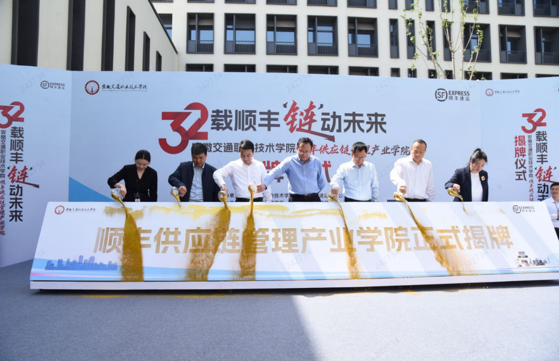 近日,顺丰供应链管理产业学院揭牌仪式在安徽交通职业技术学院举行。安徽省邮政管理局局长伍洲文、安徽顺丰总经理马士培、安徽交通职业技术学院党委书记杨菲铃、副院长梁洪波等有关单位负责人共同出席活动。