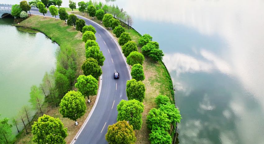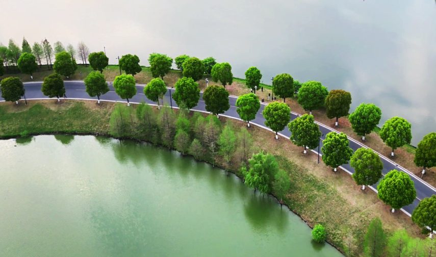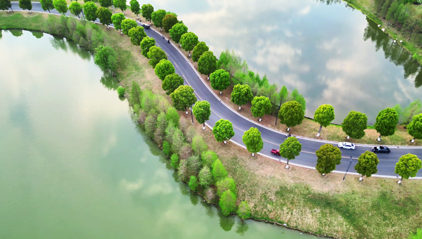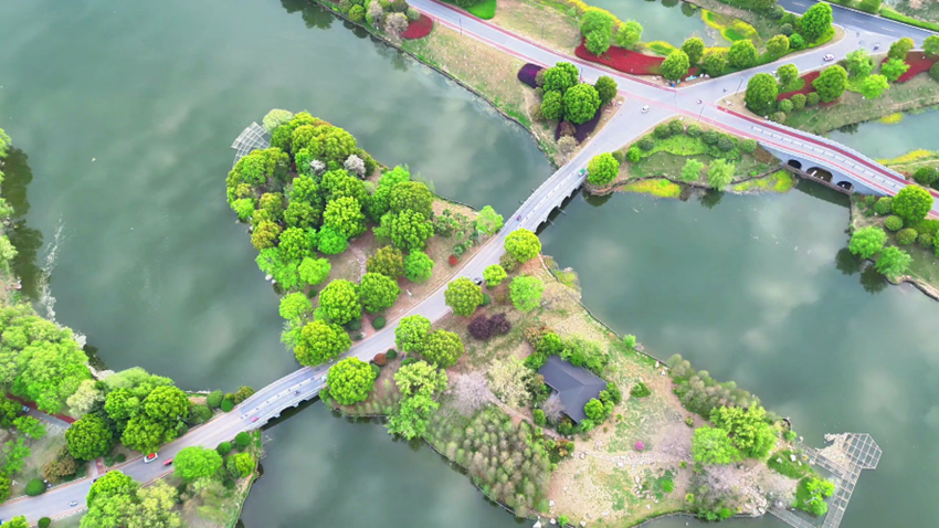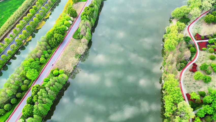 春日的安徽省颍上县五里湖生态湿地公园湖水清澈,在蓝天白云的映衬下水天一色,宛如“天空之镜”,美不胜收。(徐庆)
