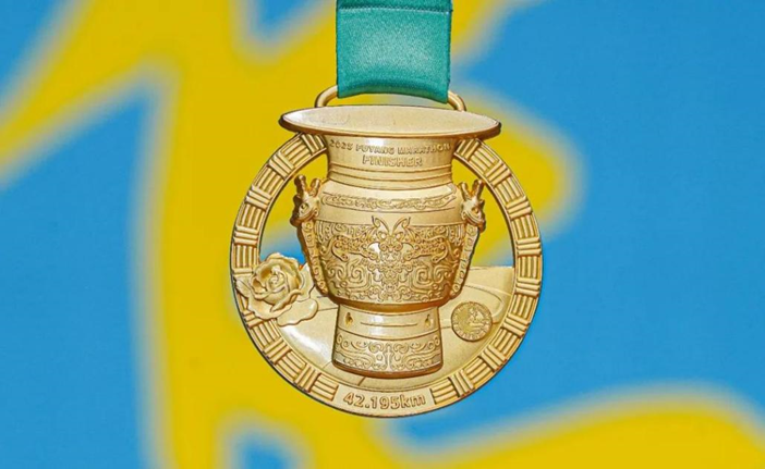 赛事奖牌设计独具匠心,将阜阳的历史文化、地域特色融入其中。更特别融入龙虎尊这一珍贵文化遗产元素,让历史瑰宝、城市景观与自然花卉在方寸之间同频共鸣,彰显阜阳“千年文脉”传承的深厚与丰盈。