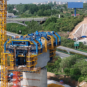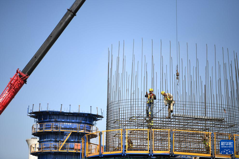 4月25日,中铁十一局工人在合武高铁安徽段金寨史河特大桥墩身施工现场作业。