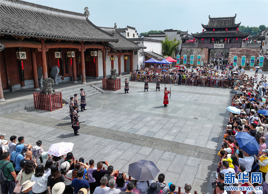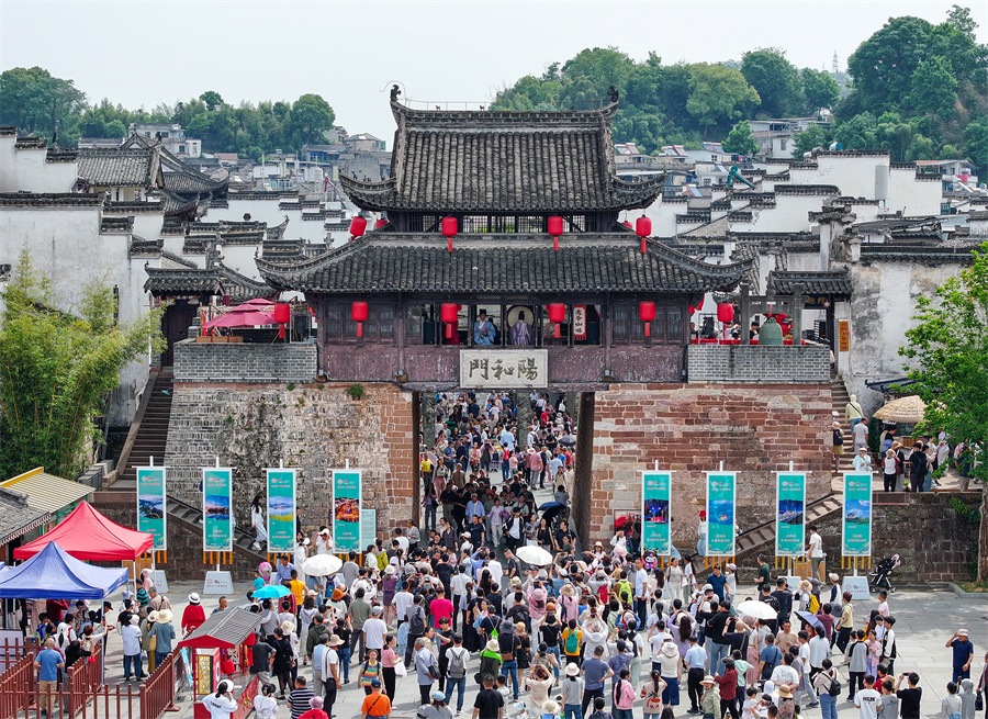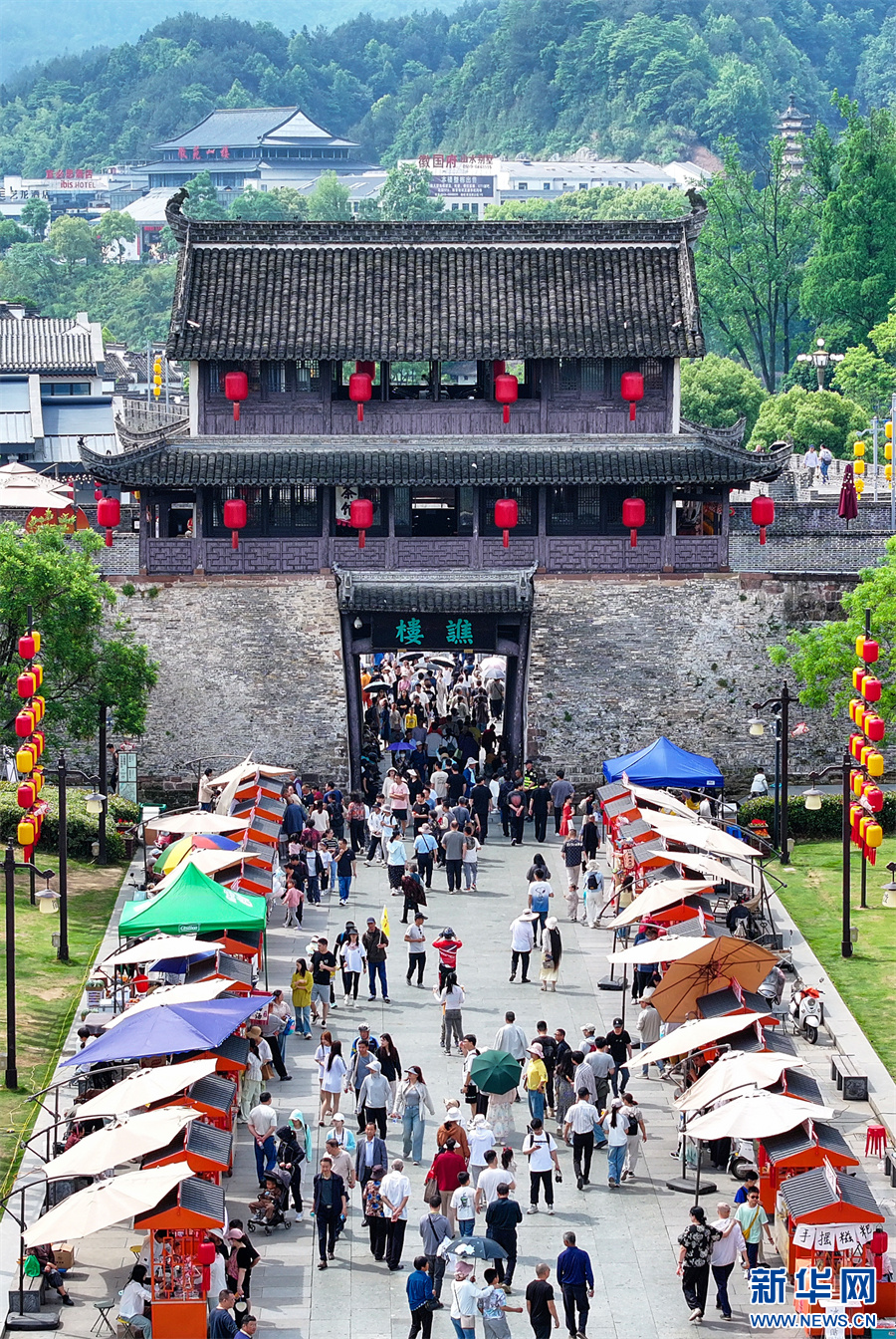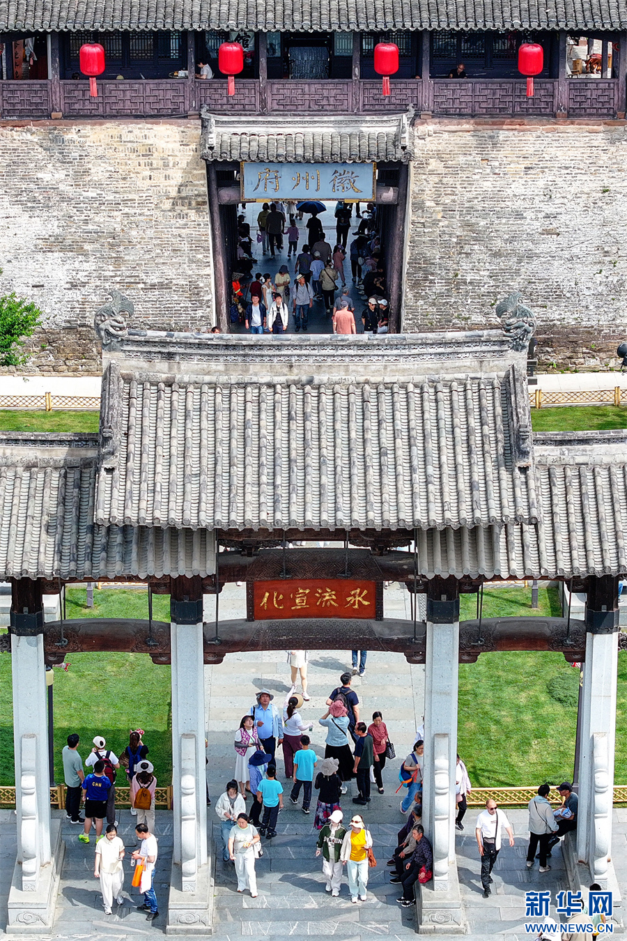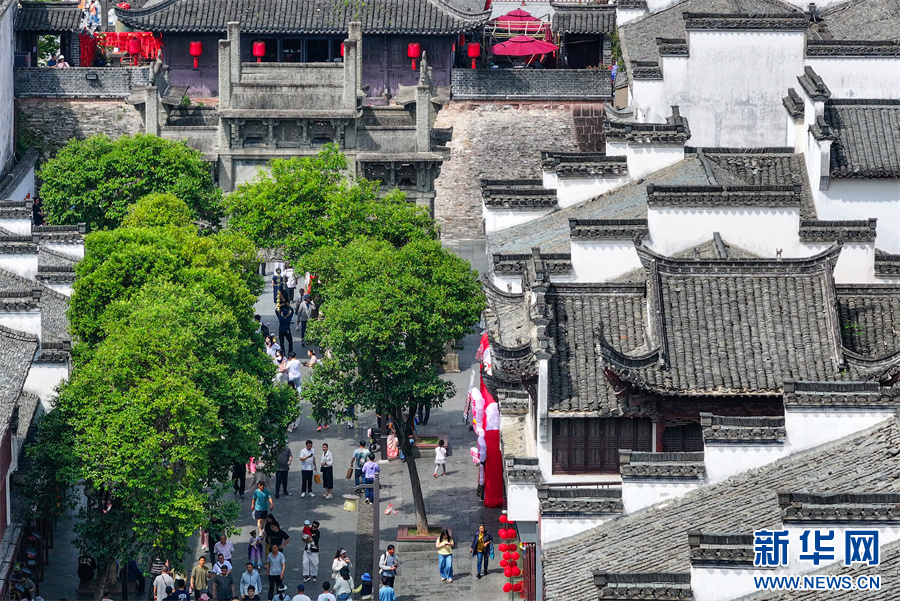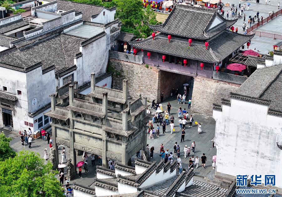 当日是“五一”假期第三日,众多游客来到安徽省黄山市歙县徽州古城游玩打卡,乐享假期。新华网发(施亚磊 摄)
