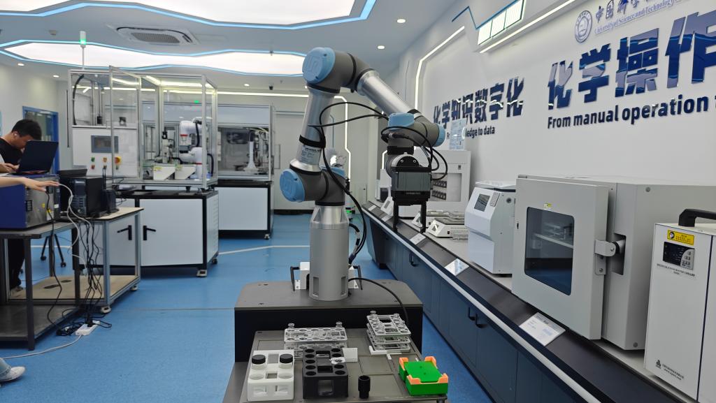 “机器化学家”用机械臂拿取样品。(受访单位提供)
