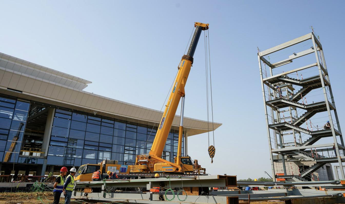 走进南北指廊,工人们熟练地操作起重机进行登机桥钢结构吊装和通风管道安装等作业,构筑空中通道。“现在是施工的关键时刻,整个项目团队始终保持全员在岗状态,通过倒排工期、优化工序衔接、科学调配施工资源等方式,在保证质量安全的前提下,全面抢抓施工窗口期推进各专业交叉作业,奋力冲刺竣工目标。”安徽建工集团股份有限公司总承包分公司项目负责人说。