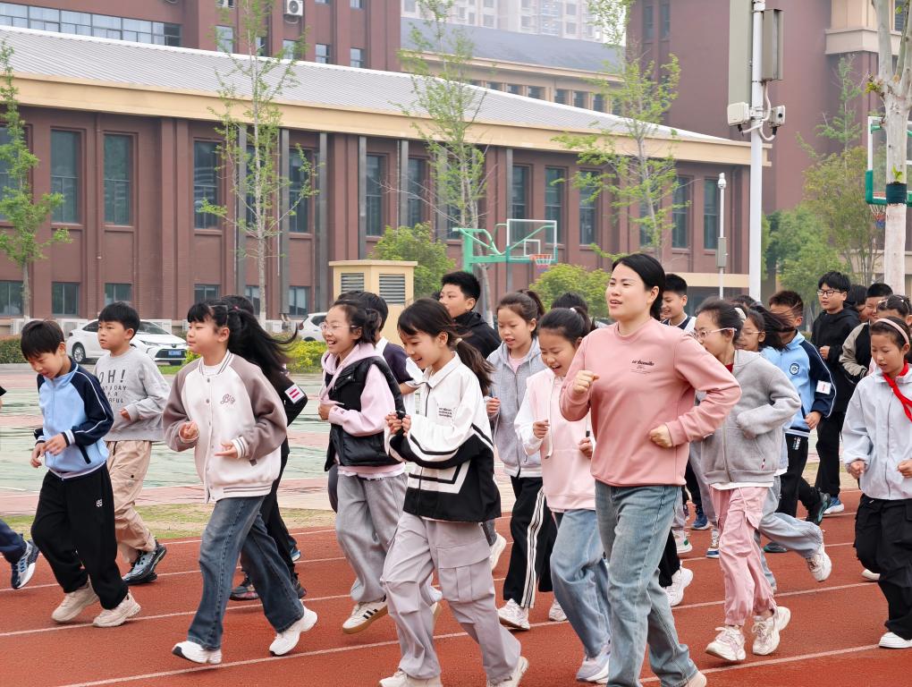 此外,每逢大课间,班主任和跟班老师走下讲台,走到孩子们中间一起跑步、跳绳。学生们倍感新鲜的同时,也跑得更起劲儿了。