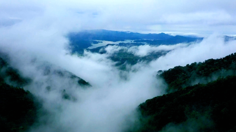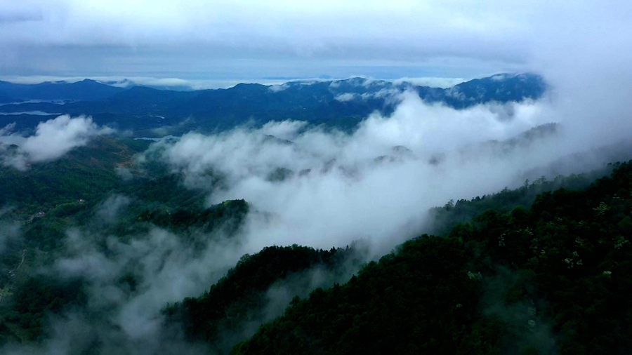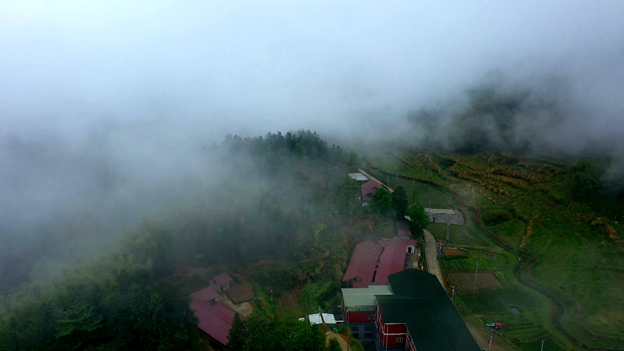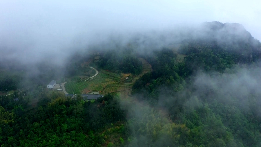 近日,航拍镜头下的安徽省太湖县天华镇百罗湾,云雾中连绵的群峰时隐时现,连同散落的农舍、整齐的茶园、蜿蜒的河流,绘就了一幅幅秀美淡雅的山村水墨图景。