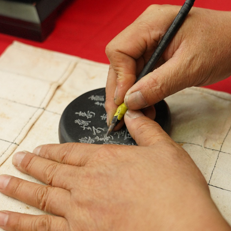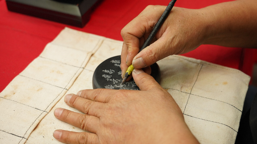 5月8日,非遗传承人在展示歙砚制作技艺。