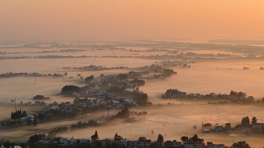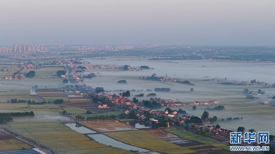 初夏时节,晨曦微露,薄纱般的雾气在安徽省望江县雷池镇的长江岸线游弋,将黛瓦白墙的屋舍晕染成画中的浅影,江面往来的船只和广袤的田野,在雾岚中若隐若现,犹如水墨丹青在宣纸上泅开,美不胜收。(沈凡 项守兵 叶磊)