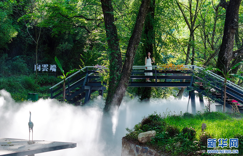 初夏时节,安徽省黄山市徽州区西溪南镇风景旖旎,新打造的“西西里秘境”雾气氤氲,宛若仙境,吸引众多游客前来打卡游玩。