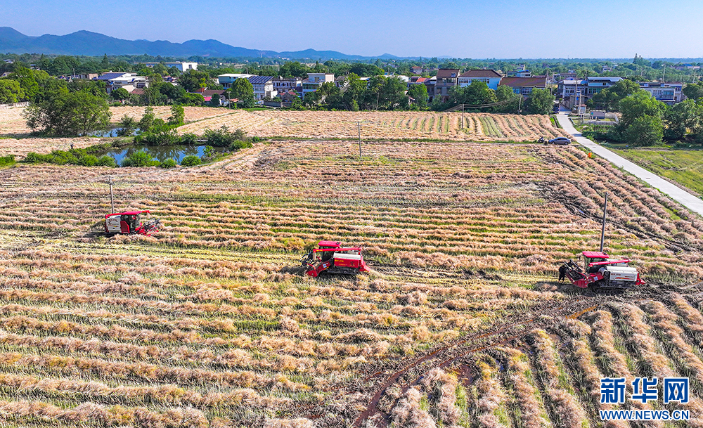 眼下,正值油菜成熟的时节,繁昌区种植户们抢抓晴好天气,忙着收割油菜。收割后,及时进行农田翻耕和水稻插秧,确保“稻油轮作”无缝衔接。新华网发(鲁君元 摄)