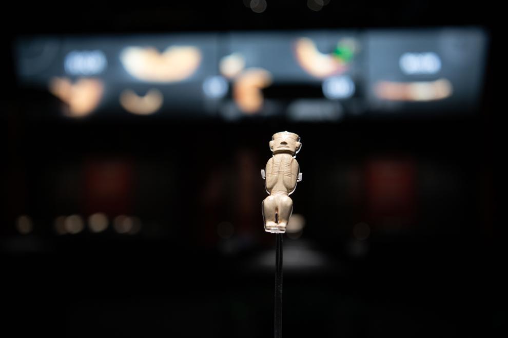 凌家滩遗址博物馆内展出的玉蹲(坐)姿人。新华社记者 张端摄
