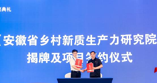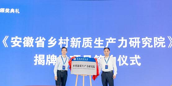 安徽省农业农村厅总畜牧师张文和安徽科技学院校党委常委、副校长王兵共同为安徽省乡村新质生产力研究院揭牌。安徽科技学院经济学院院长李刚与企业代表签订战略合作协议。