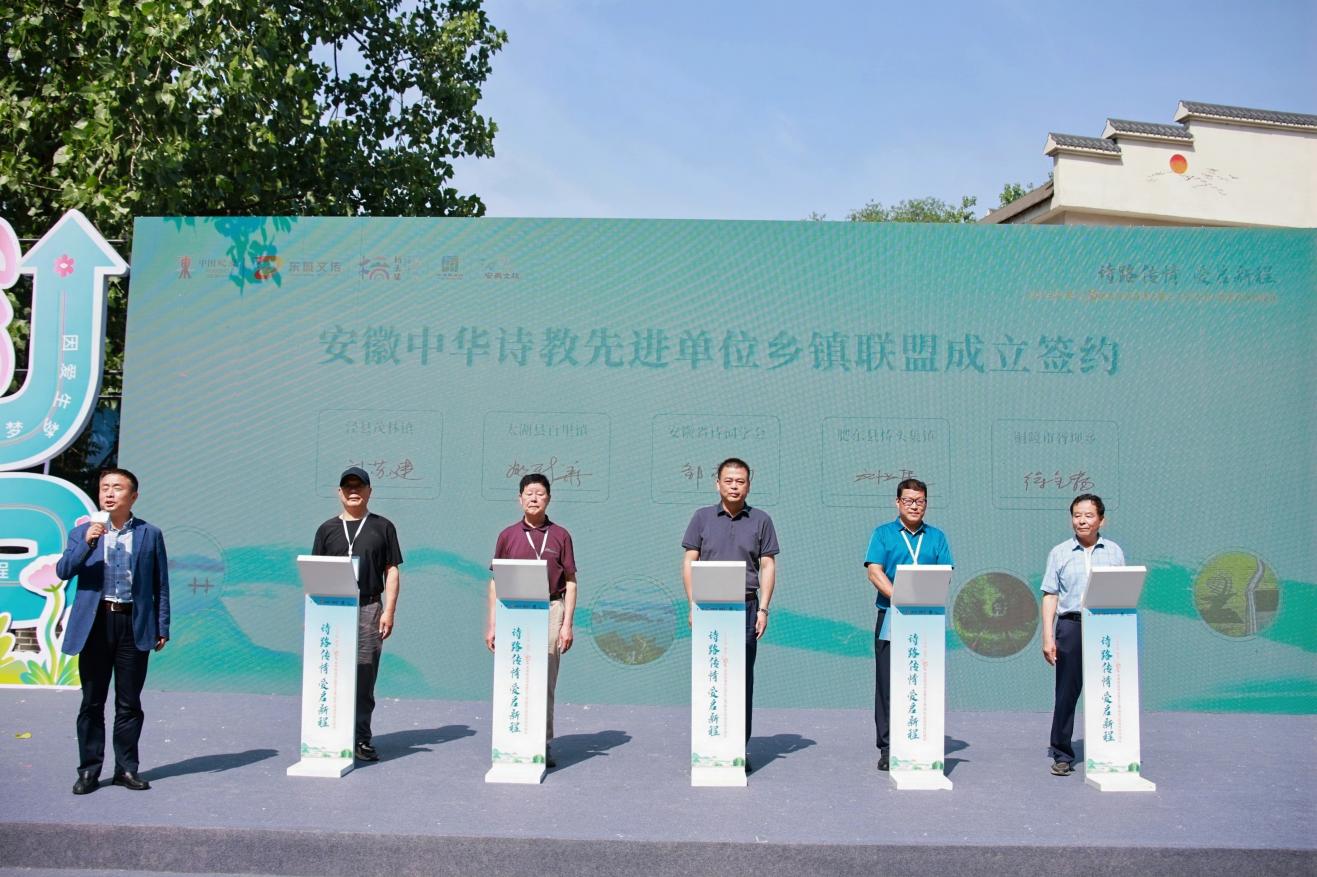 活动现场,肥东县被中华诗词学会评定为“中华诗教标准化县”,肥东桥头集镇与泾县茂林镇、铜陵胥坝乡、太湖百里镇共同缔结全国首个——中华诗教先进单位乡镇联盟。诗脉赓续,让传统文化在现代社会中焕发新生,为肥东高质量发展提供精神动力和文化支撑。